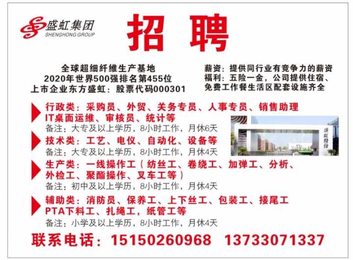 1、招聘结尾工2人,要求女性年龄25~42岁,工资4500-6500,长白班,平望厂...