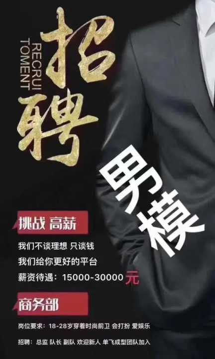 晚上7:30上班 负责包厢搞气氛 身高180以上 颜值帅...