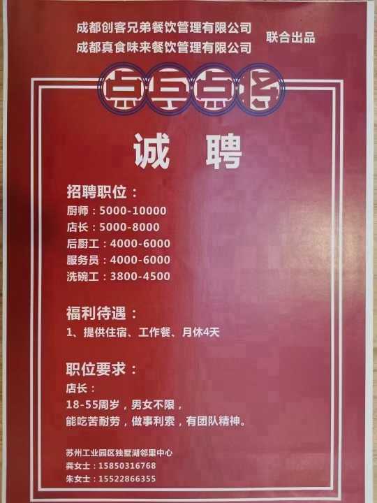 餐饮店招聘收银员,要求20-35女性,身高162以上,喜欢餐饮行业,包吃,薪资...