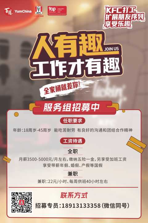吴江汾湖、北厍、七都、平望、震泽肯德基招募全职员工长期兼职数名(就近分...