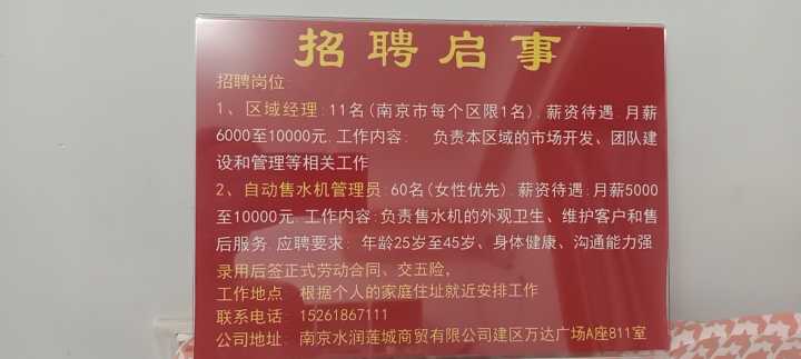储备店长 5000-7000 工资:10日发放工作地点:南京海事学院 南京财经大学...