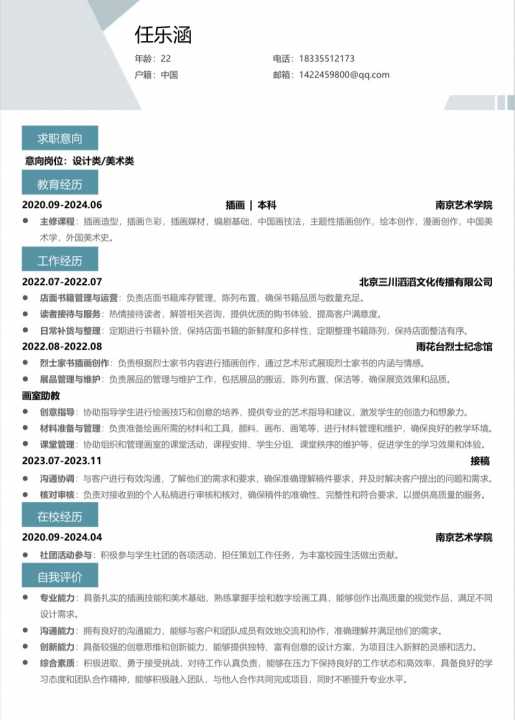南京艺术学院24届插画本科毕业生,熟悉ps、word等办公软件,英语四级已过,...